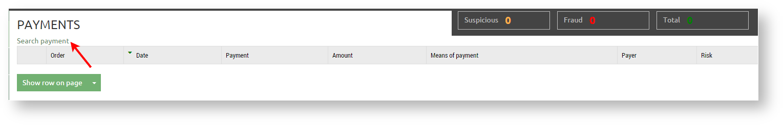 The first view you see after login is ' Payments '. The table of payments is empty if there are no payments satisfying the filter parameters.