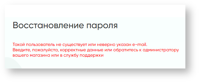 Если указанный логин не существует в системе, или ему не соответствует указанный адрес электронной почты, или у пользователя отсутствуют права на изменение собственного пароля, то на экране отобразится следующее сообщение: