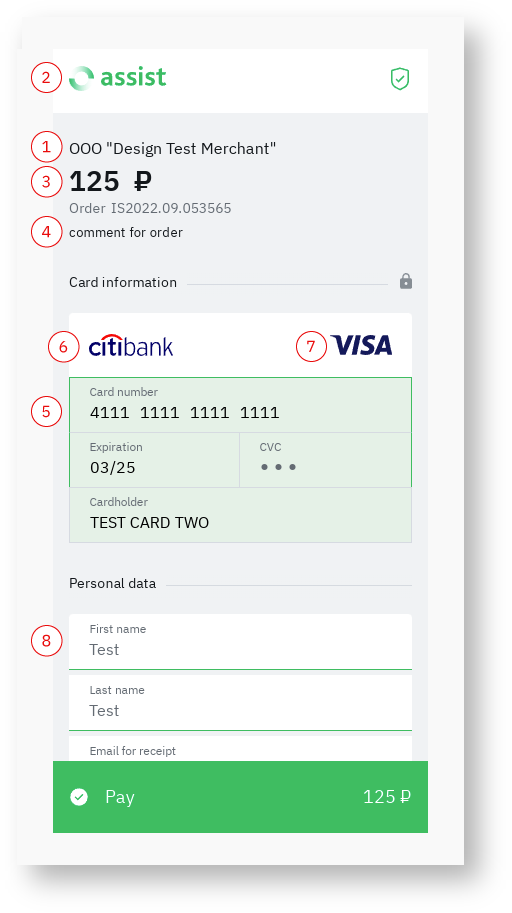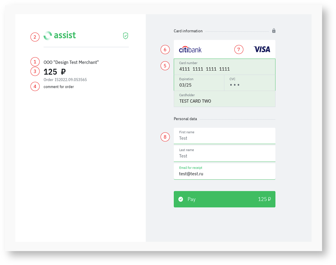 The payment pages of a standard type are displayed to the buyer for payments through IPS Assist using redirection to the Assist site or display in an iFrame built into the merchant's website.