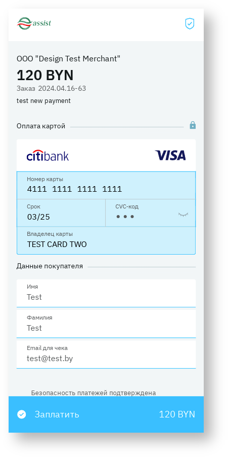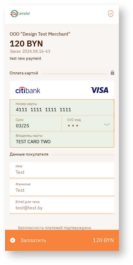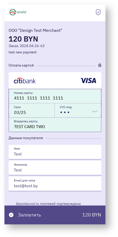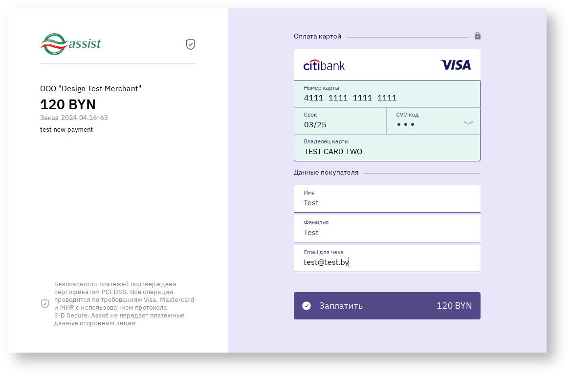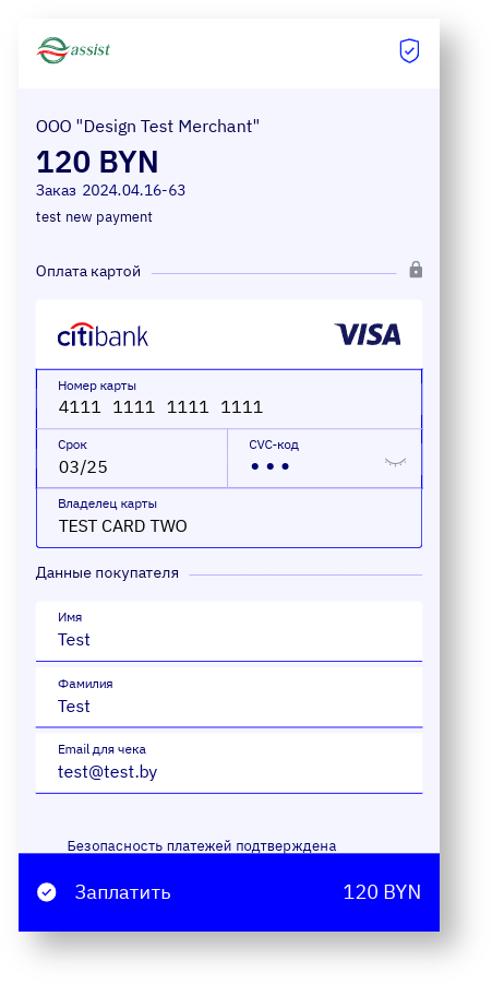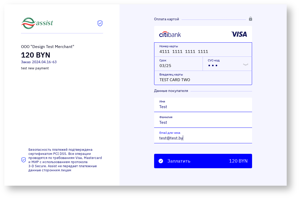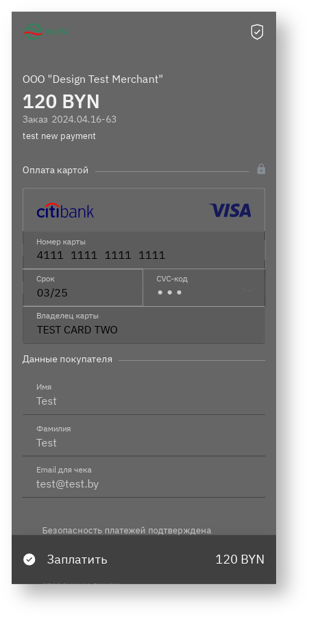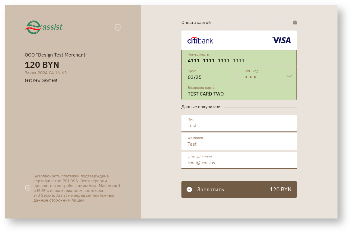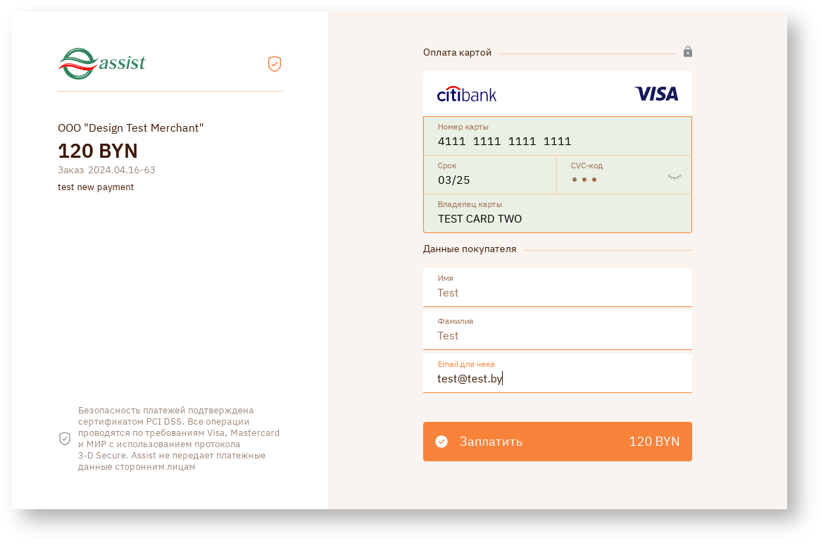 Имеется возможность стилизовать платежные страницы по цвету на основе собственного брендбука предприятия. Подробности обсуждаются с отделом технической поддержки.