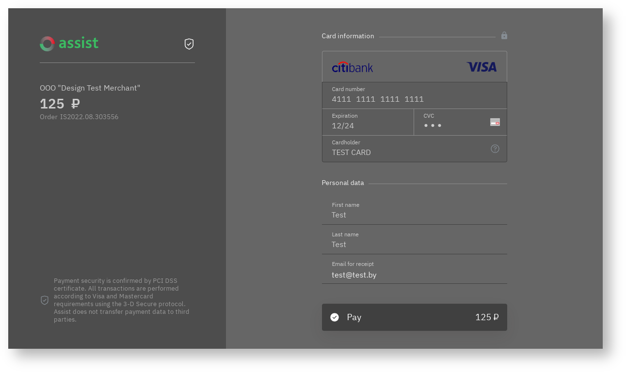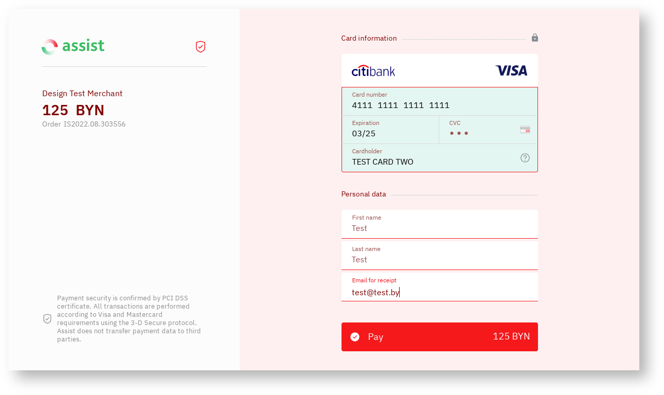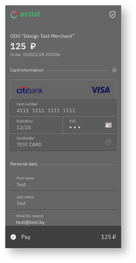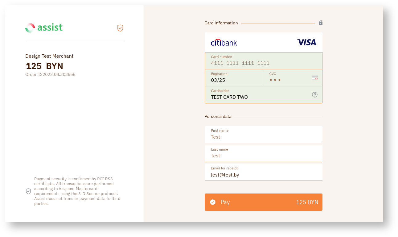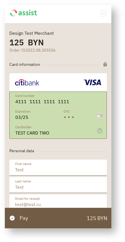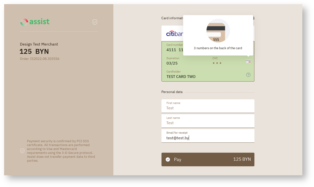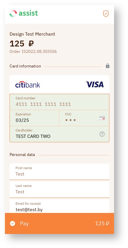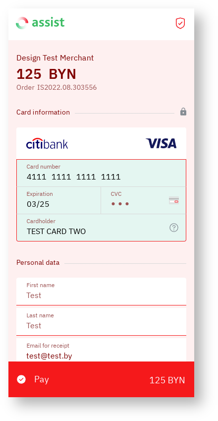It is possible to style payment pages by color based on the company's own brand book. Details are discussed with the technical support setvice.