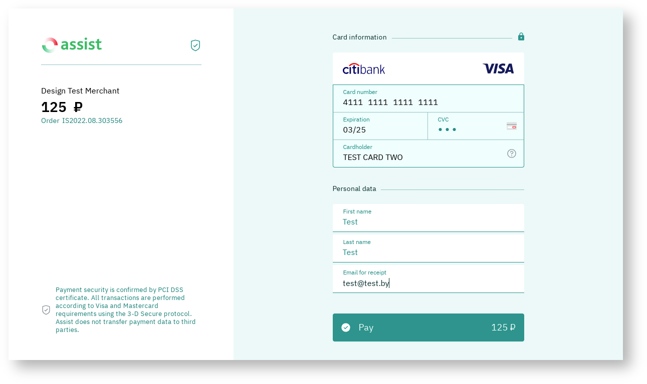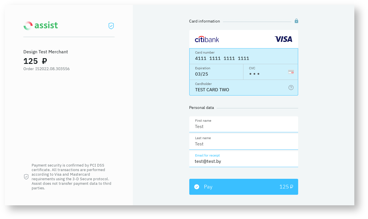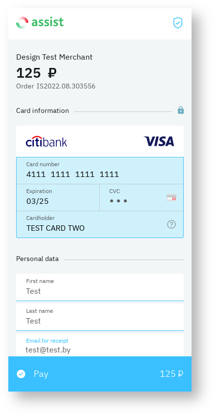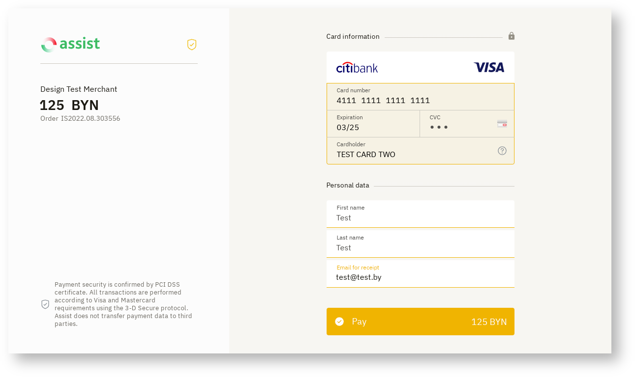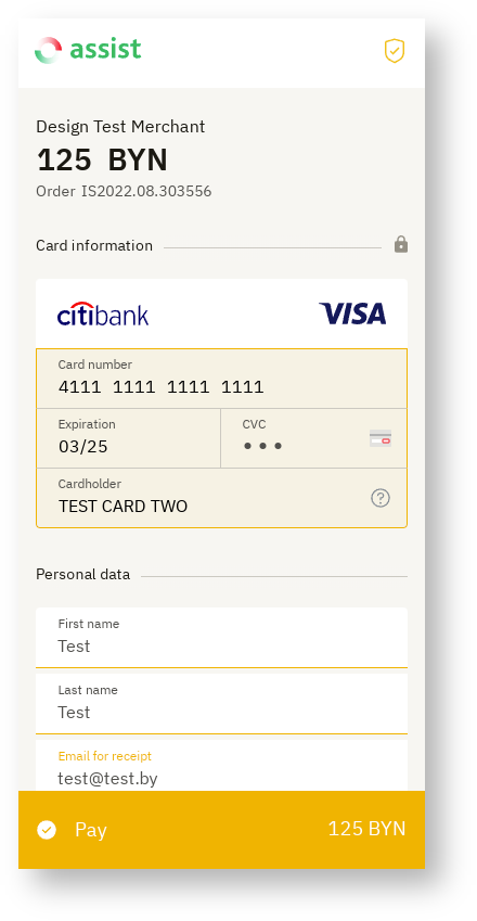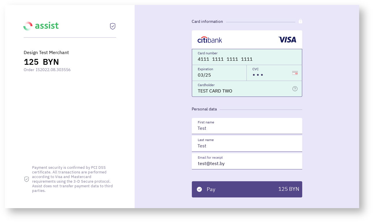 It is possible to style payment pages by color based on the company's own brand book. Details are discussed with the technical support setvice.
