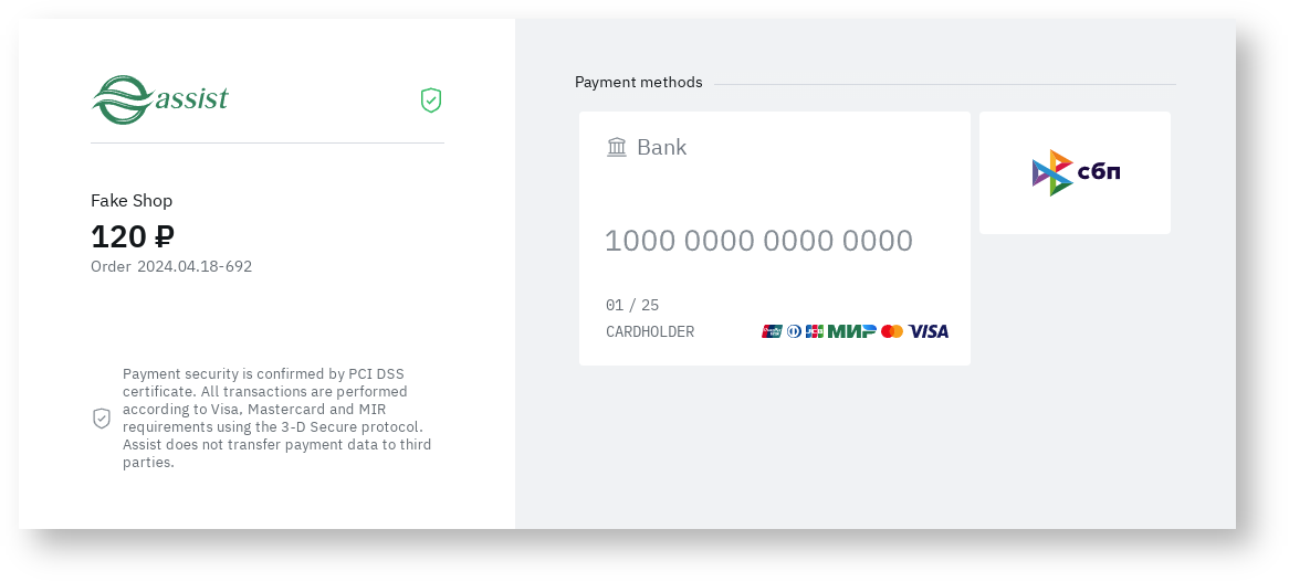 - На платежной странице Assist покупатель выбирает СБП в качестве платежного средства.