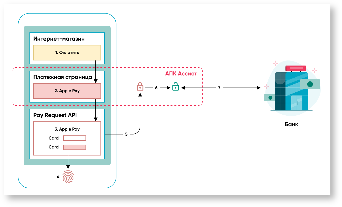 При оплате токеном Apple Pay на платежной странице AПK Ассист выполняются следующие действия: