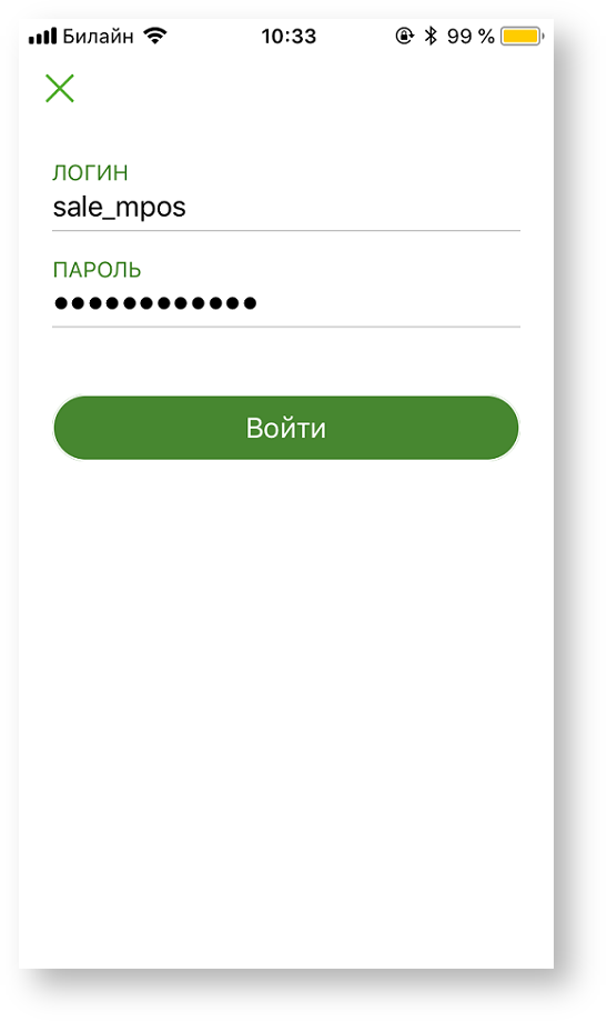 При запуске приложения Assist mPOS необходимо подтвердить свои права на проведение платежей в приложении. Для этого используются наименование учетной записи пользователя и пароль, выданные администратором системы.