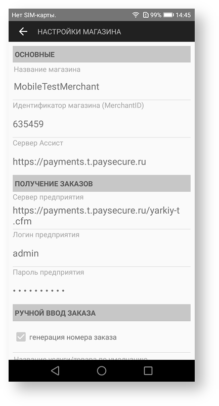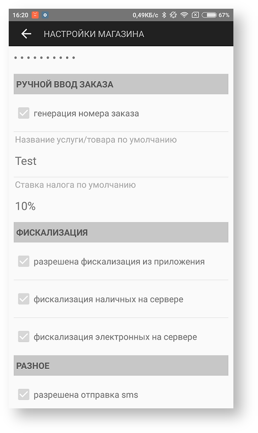 В разделе «Название магазина» отображается название магазина, которое будет отображаться в дальнейшем на экране приложения при проведении платежей.