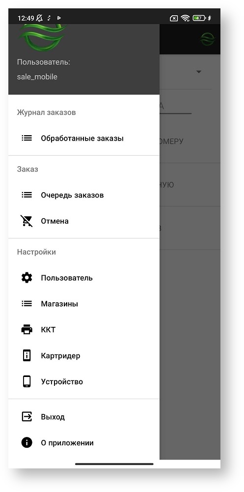 Для просмотра настроек приложения следует воспользоваться слайд-меню левой боковой панели. Все настройки выполняются в АПК Ассист и передаются в приложение при регистрации.