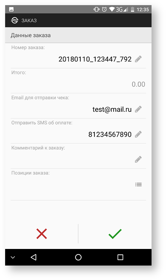 Если номер заказа введен правильно, то полученные от информационной системы компании-продавца или курьерской службы данные заказа - Email адрес покупателя, его телефон и список оплачиваемых товаров отобразятся на экране приложения: