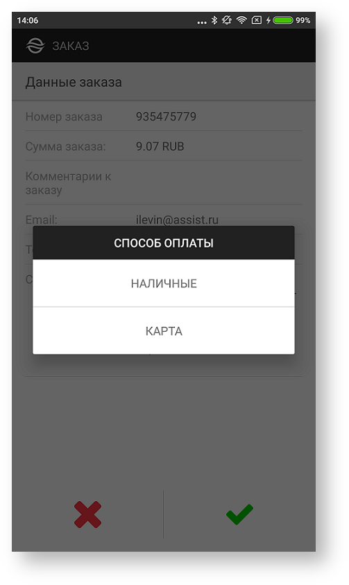 Перед оплатой необходимо выбрать способ оплаты заказа – наличными или картой.