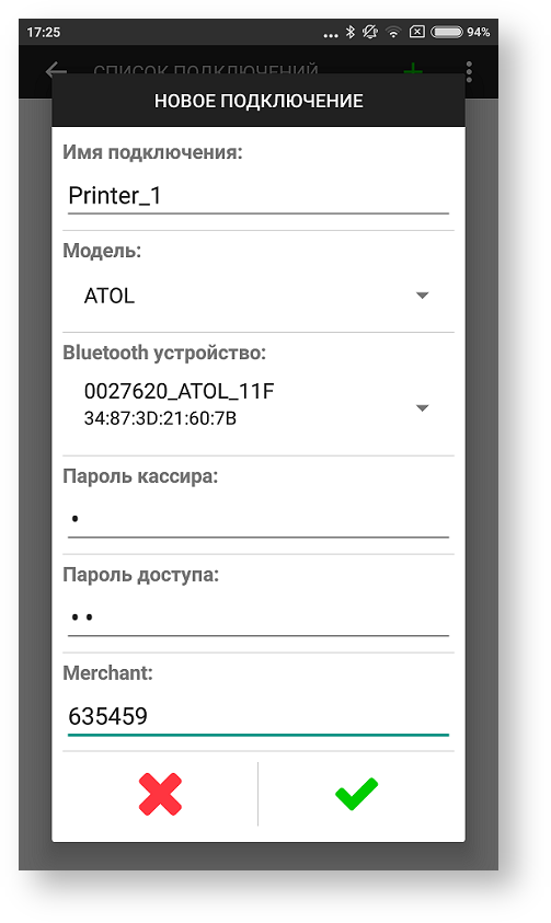 Если в разделе «Bluetooth устройство» ничего не отображается, необходимо подключить ККТ, выбрав в настройках смартфона соединение по Bluetooth и запустив поиск ближайших устройств..