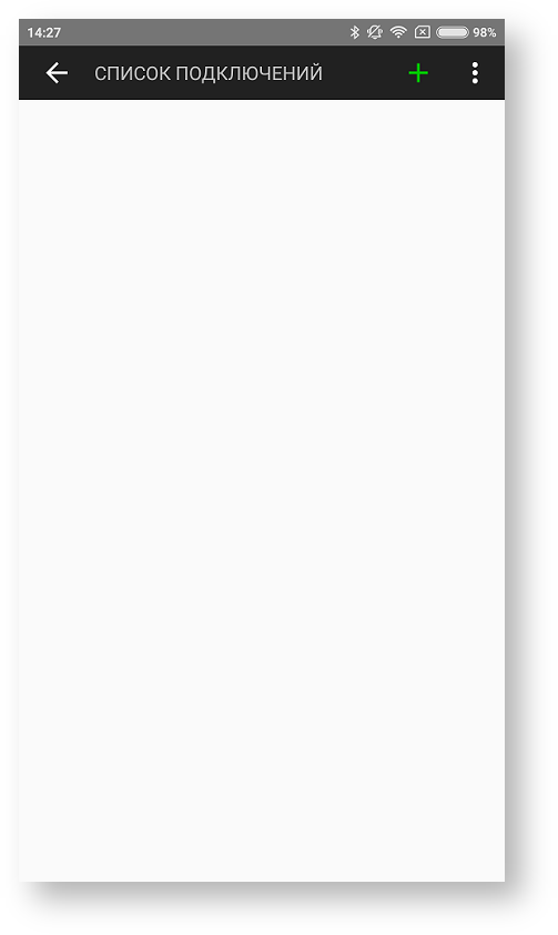 Для добавления нового подключения необходимо нажать на кнопку «+», после этого откроется экран настроек подключения.