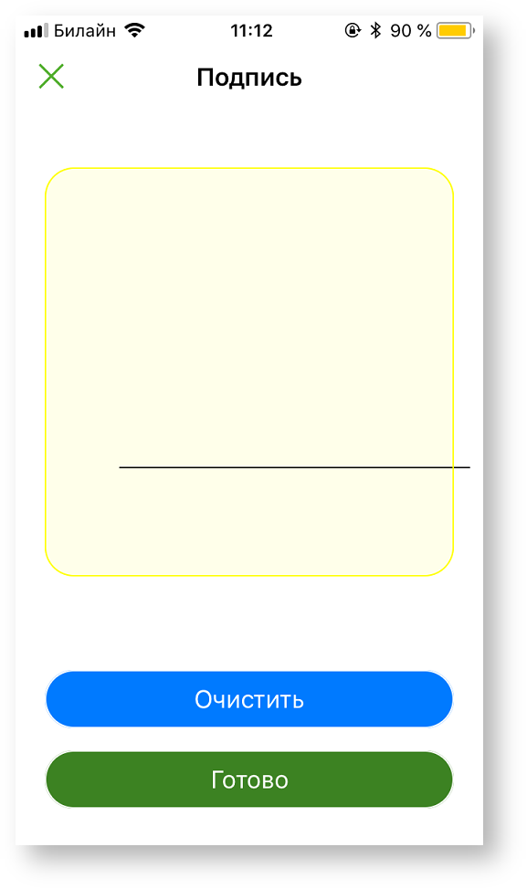 При верификации по подписи появляется новый экран для подписи покупателя: