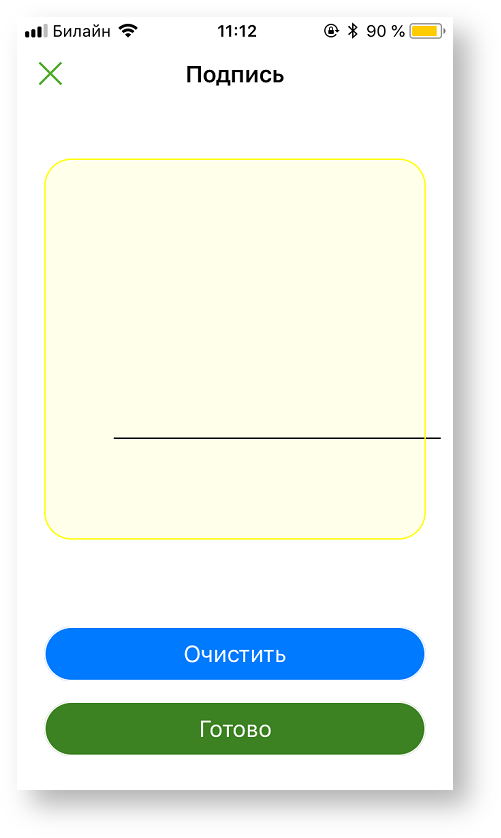 При верификации по подписи появляется новый экран для подписи покупателя: