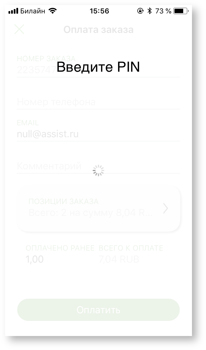 В этот момент пользователь может прервать процесс оплаты, нажав специальную кнопку Х, после чего выполняется возврат на страницу данных заказа.