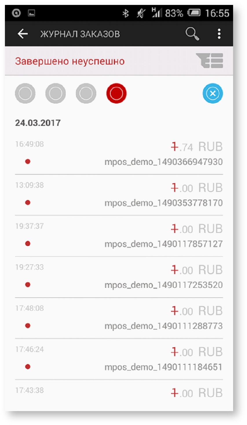 • красный - неуспешная оплата по заказу (платеж отклонен);