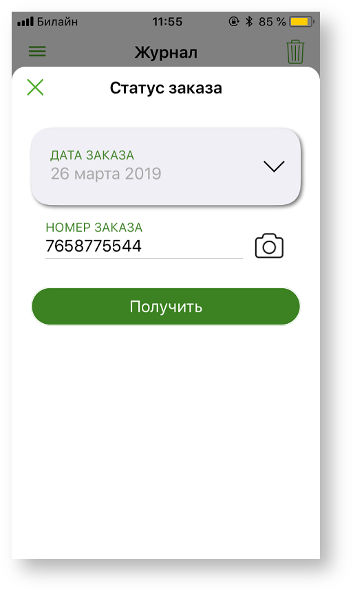 С помощью фильтра по дате можно искать нужную запись в журнале заказов, задав номер заказа полностью и его дату.