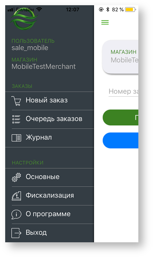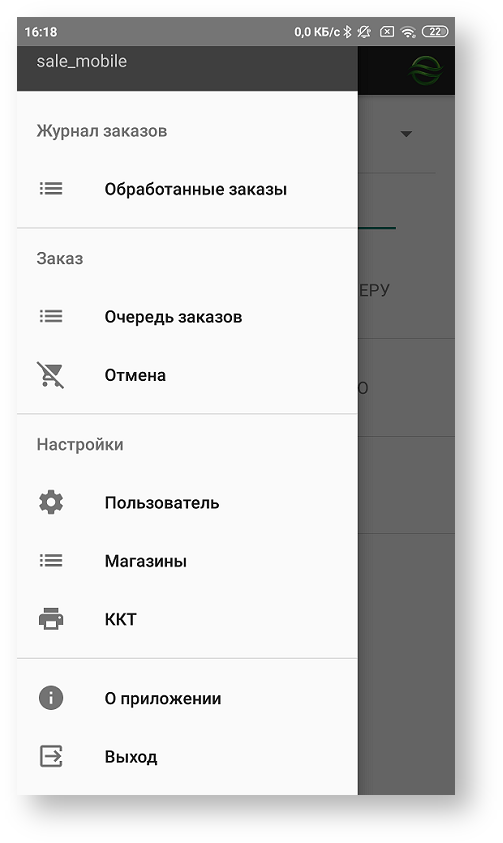 Для просмотра настроек приложения следует воспользоваться слайд-меню левой боковой панели. Все настройки выполняются в АПК Ассист и передаются в приложение при регистрации.
