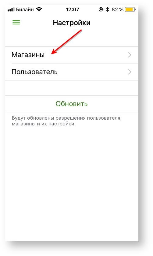 Просмотр настроек магазинов осуществляется путем выбора раздела «Магазины» секции «Настройки» в слайд-меню левой боковой панели