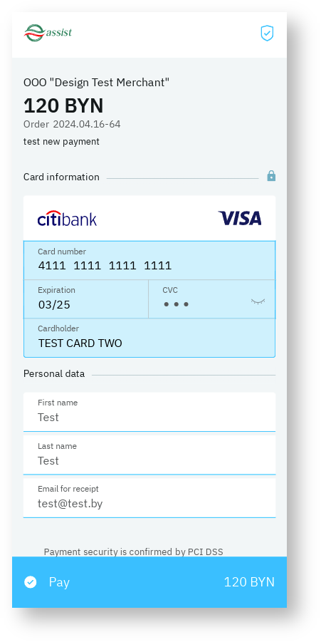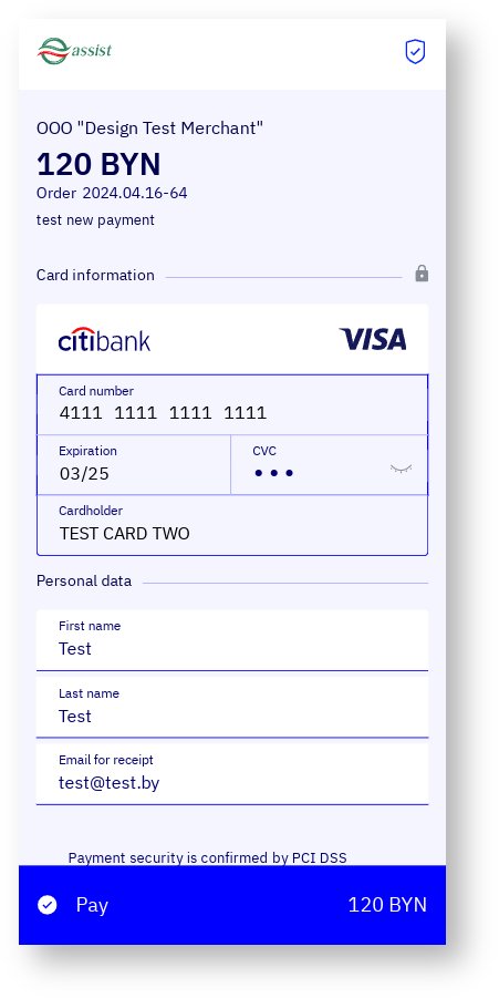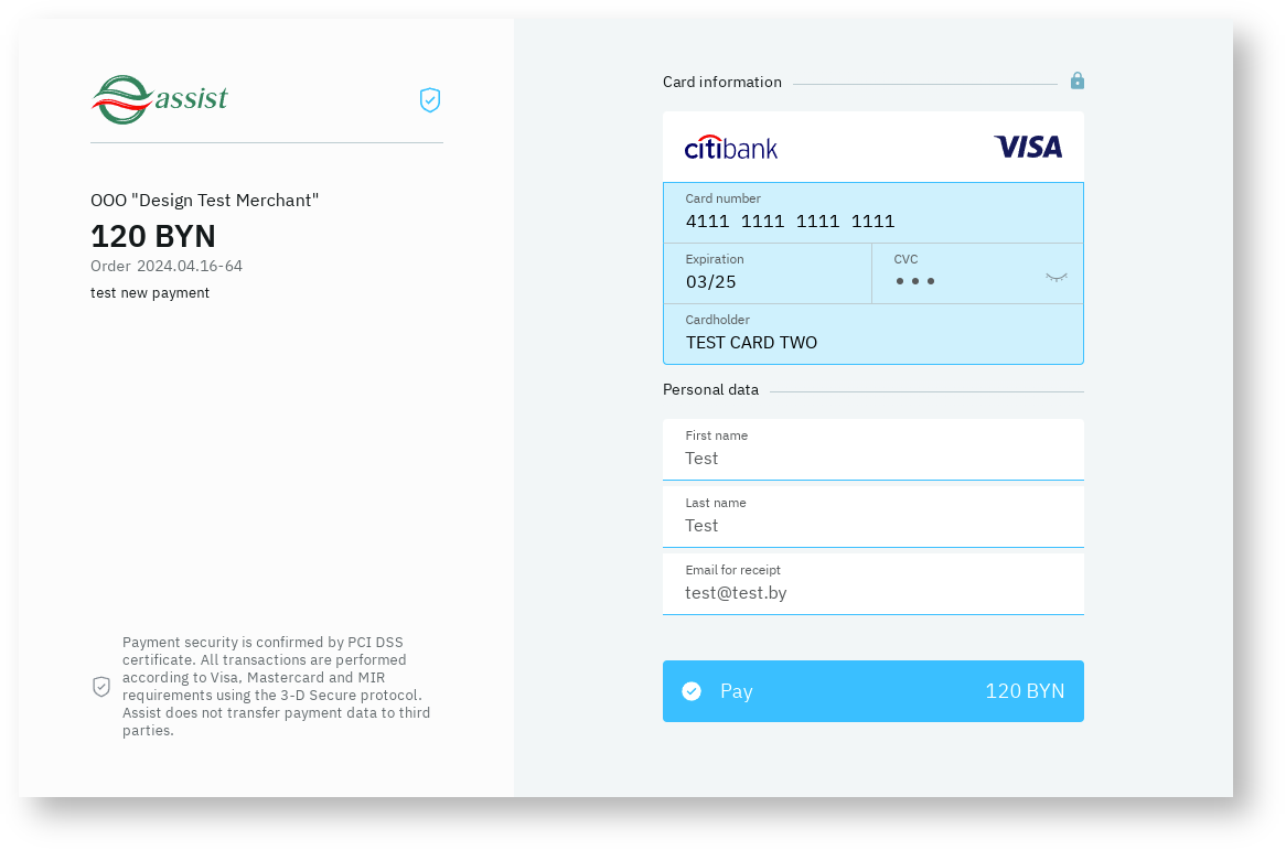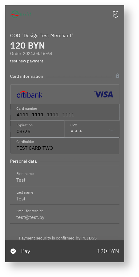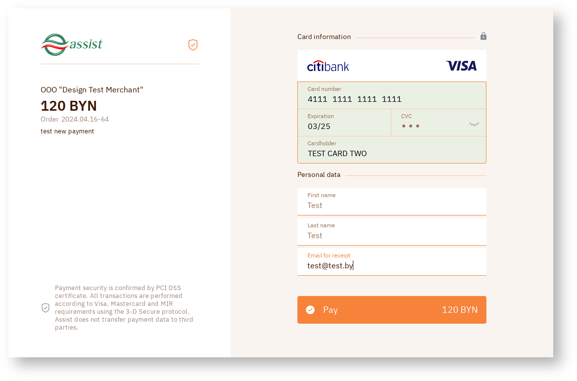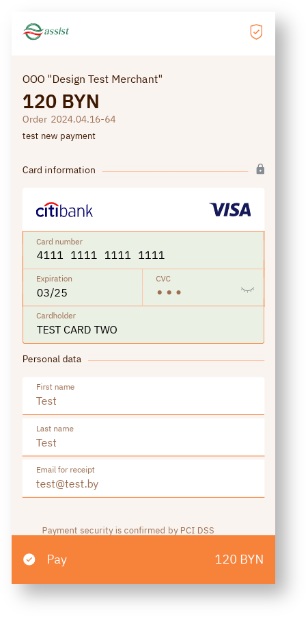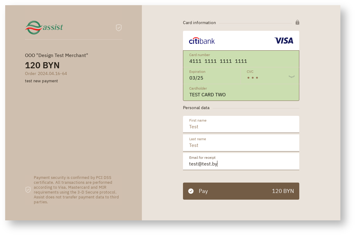 It is possible to style payment pages by color based on the company's own brand book. Details are discussed with the technical support setvice.