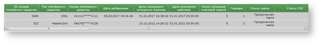 Перечень параметров, отображаемых на вкладке «Настройки платежей»