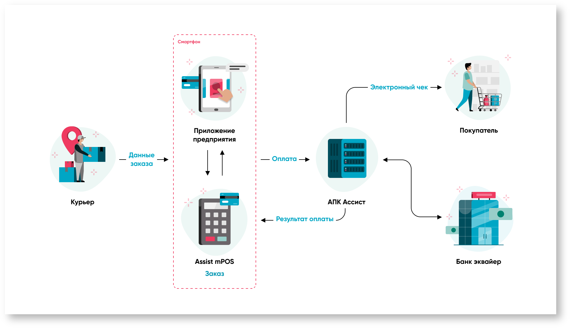 Мобильное приложение Assist mPOS может использоваться по-разному в зависимости от технологии работы курьерской службы (мобильного офиса). В приложении Assist mPOS возможны три варианта получения данных заказа для оплаты доставленного курьером заказа или товара (услуги) в мобильном офисе.