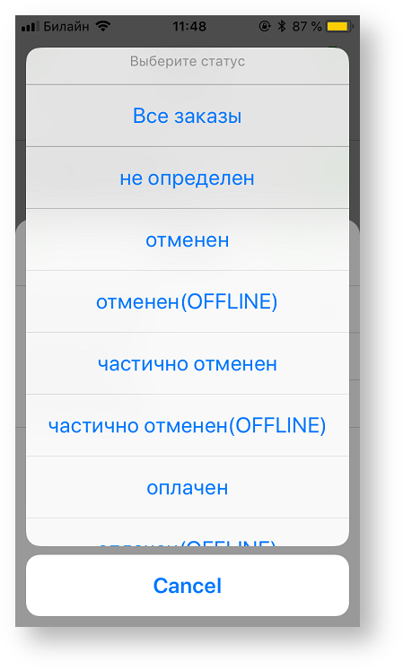 Ниже представлены примеры применения фильтров по статусам заказов.