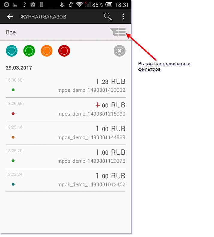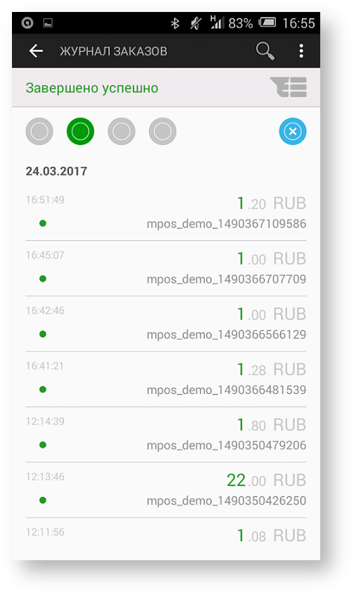 - зеленый – успешная оплата по заказу;