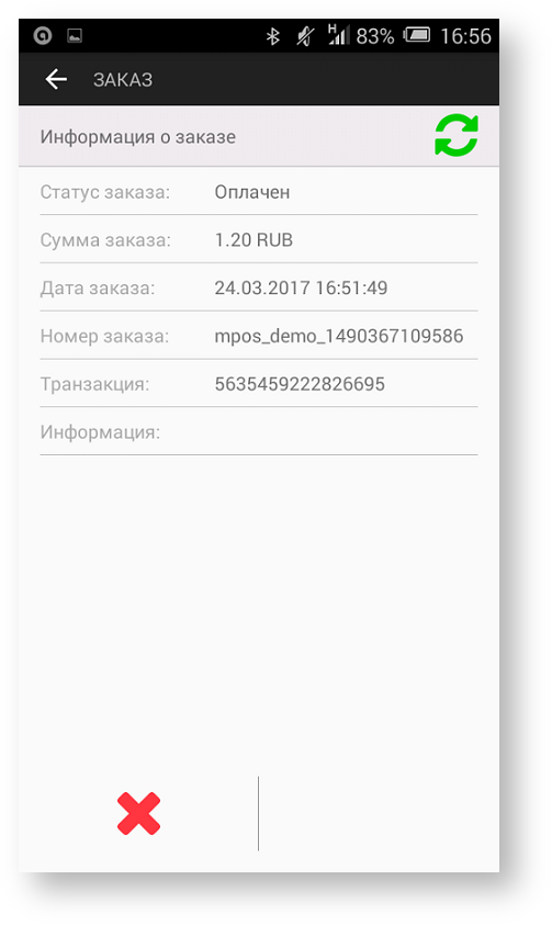 Если по каким-либо причинам в процессе оплаты приложение Assist mPOS было свернуто на экране смартфона (случайно нажата кнопка «Домой» на телефоне, получено сообщение SMS, ответ на звонок и т.п.), то следует открыть приложение заново. Статус текущего заказа можно проверить в журнале заказов приложения Assist mPOS.