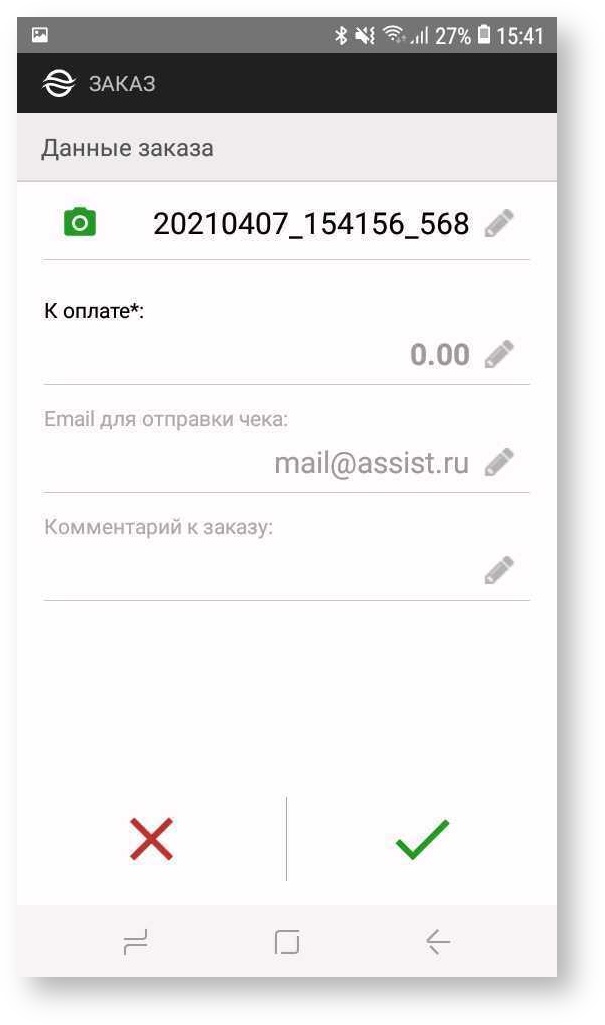 При попытке использовать фотокамеру смартфона при создании следующего заказа пользователю будет предложен новый запрос на разрешение ее использования приложением Assist mPOS.