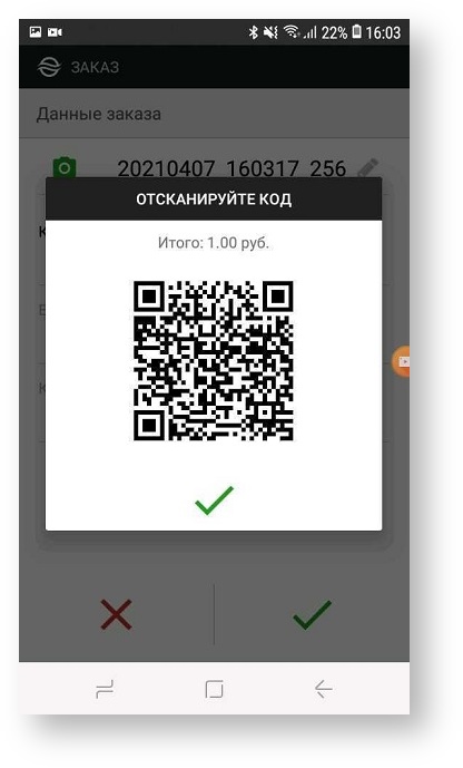 При выборе способа оплаты с помощью СБП (пункт меню «БЫСТРЫЙ ПЛАТЕЖ») на экране через некоторое время отображается QR-код для оплаты заказа: