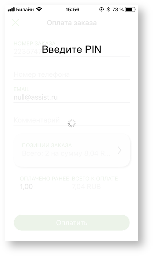 PIN-код вводится на беспроводном терминале. После успешного ввода PIN-кода покупателю предлагается забрать карту: