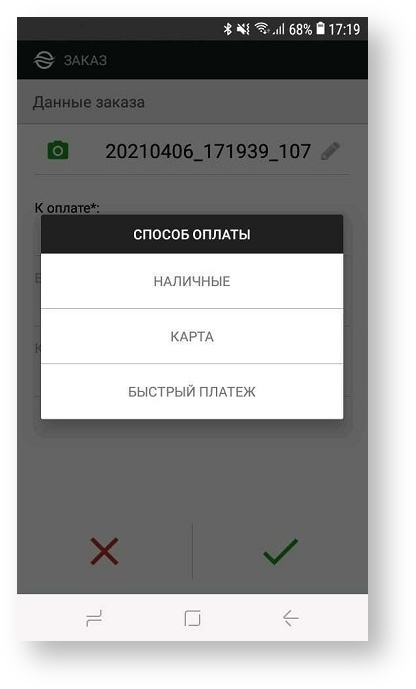 Кнопка подтверждения ввода подписи «» становится активной после выполнения подписи на экране. Кнопка отмены ввода подписи «r» отменяет оплату заказа.