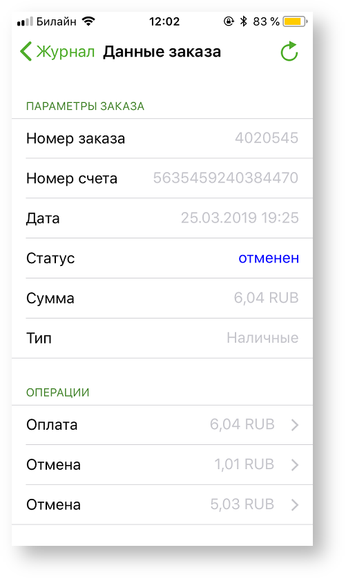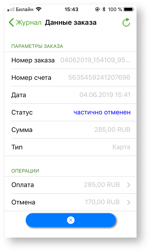 Также возможна частичная отмена платежа – отмена выделенных позиций целиком или частей выделенных позиций.