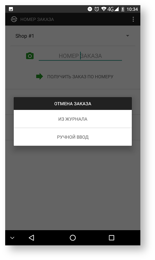 Далее необходимо выбрать способ отмены заказа – с помощью ручного ввода данных заказа для отмены или с помощью журнала заказов.