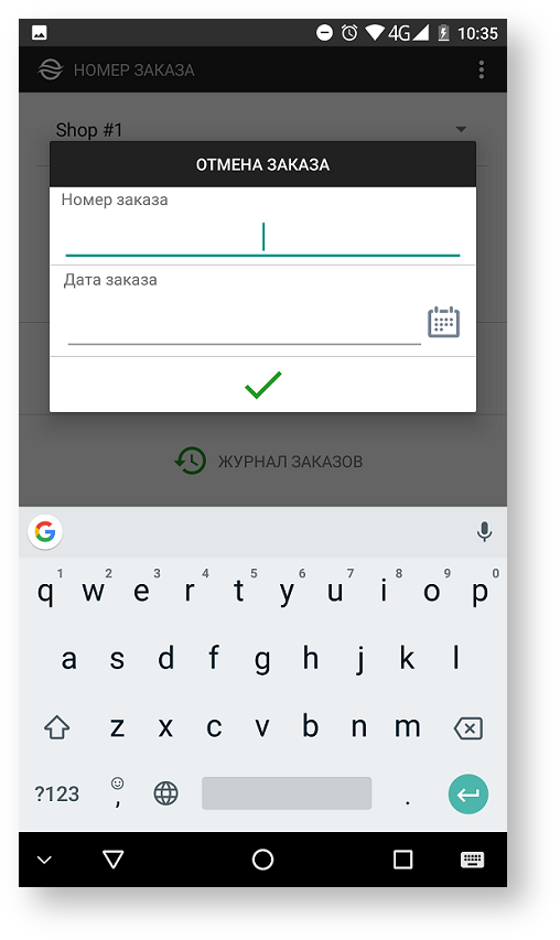 В случае ручного ввода данных заказа нужно указать номер заказа и дату его оплаты.