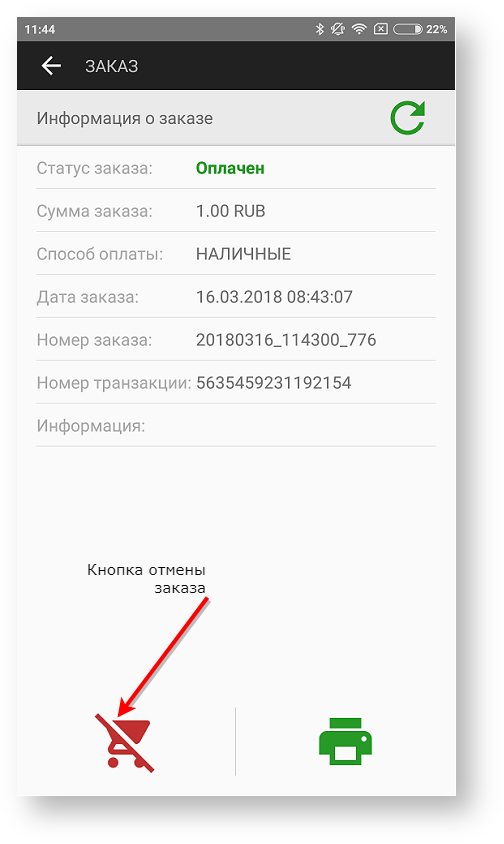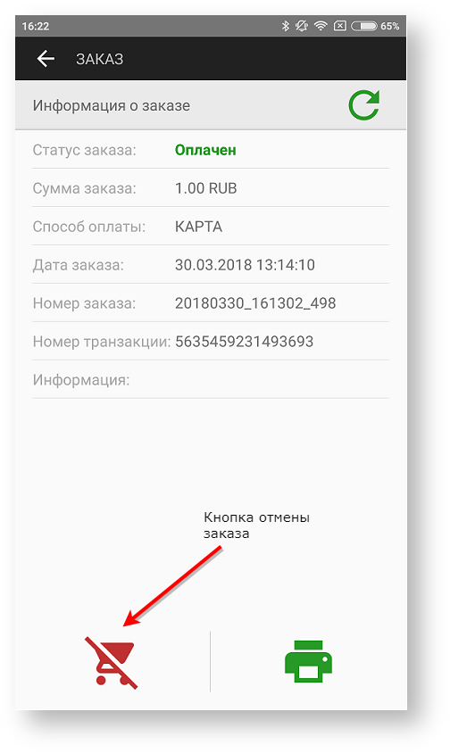 Для этого следует нажать специальную кнопку отмены при просмотре оплаченного заказа в журнале.