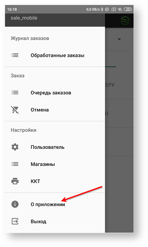Информацию о приложении можно получить, выбрав пункт «О приложении» в слайд-меню левой боковой панели.