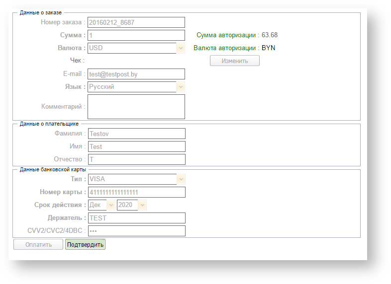 - рядом с полями «Сумма» и «Валюта» появятся поля «Сумма авторизации» и «Валюта авторизации» с соответствующими значениями;