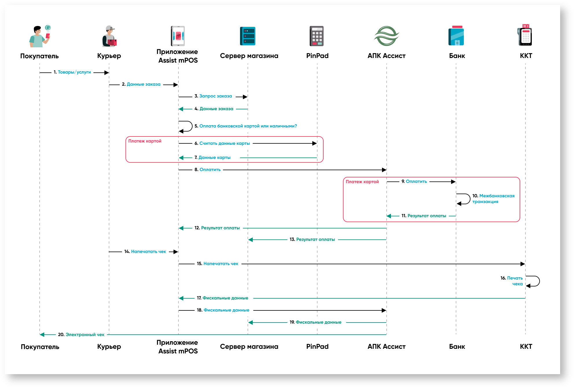 18. Приложение Assist mPOS возвращает данные чека на сервер АПК Ассист.