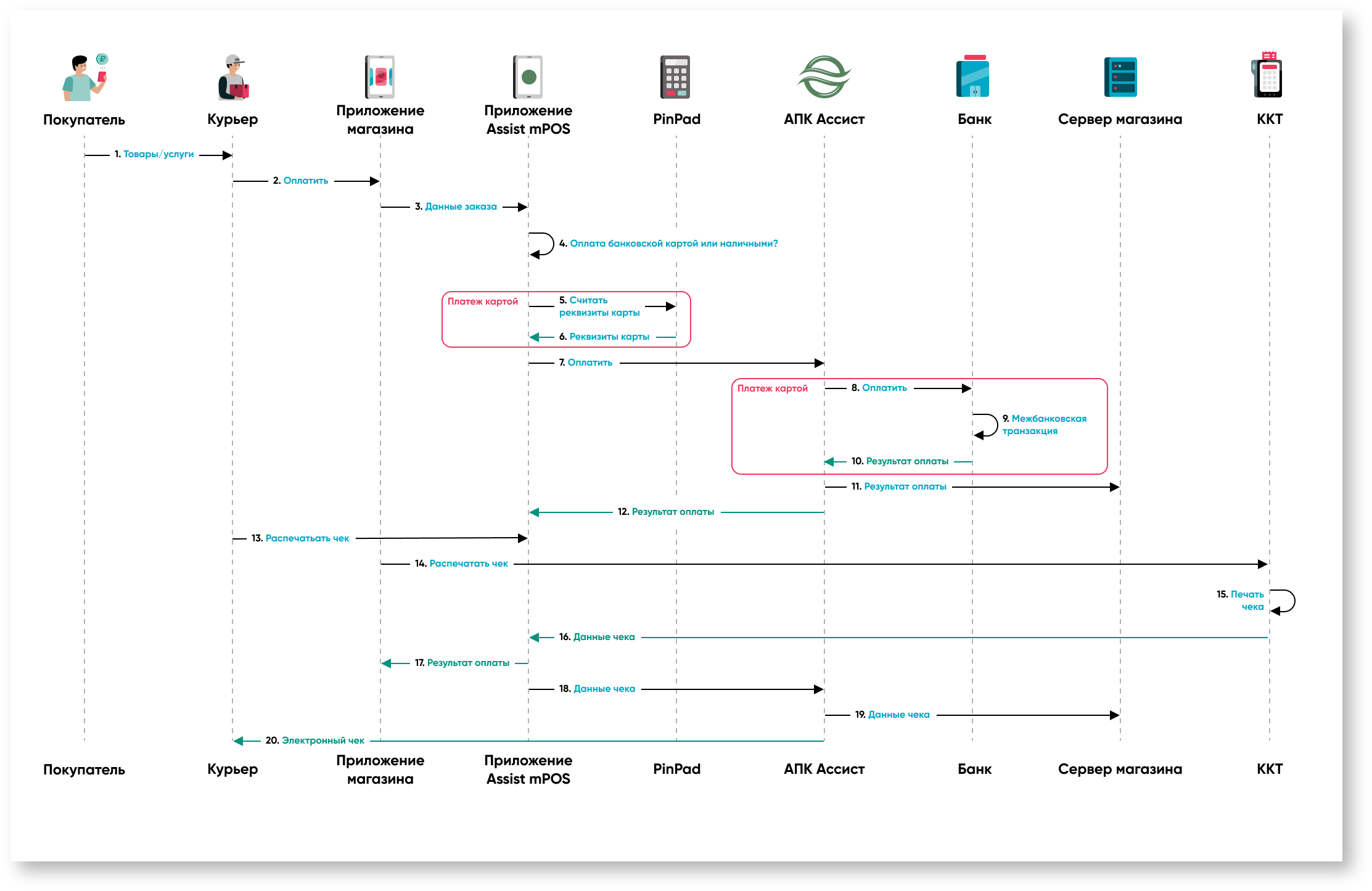 - Сервер АПК Ассист возвращает результат оплаты в приложение Assist mPOS .