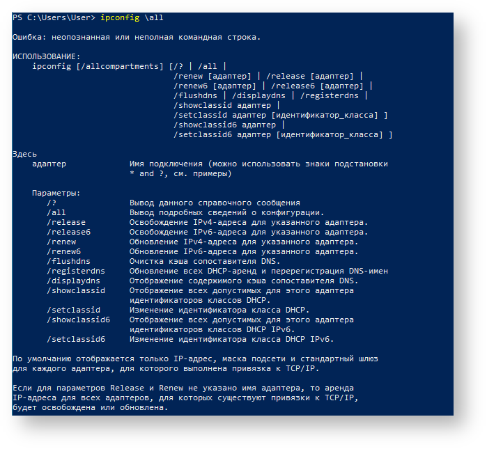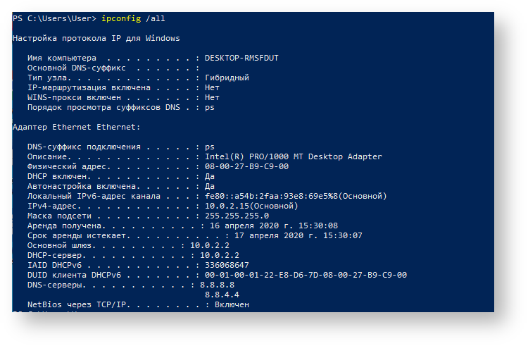 Проверить текущие настройки сетевых интерфейсов можно с помощью команды в Powershell: