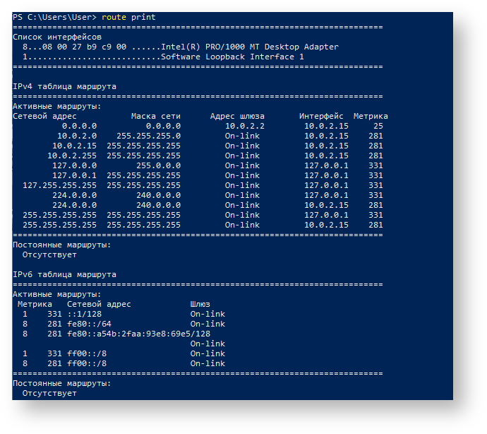 Вывести на экран все содержимое таблицы IP-маршрутизации можно с помощью команды в Powershell: