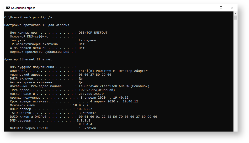 Проверить текущие настройки сетевых интерфейсов можно с помощью команды в командной строке (cmd):