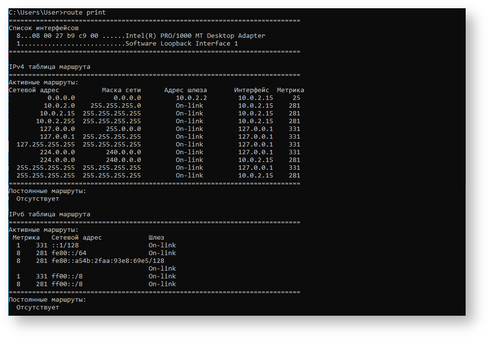 Вывести на экран все содержимое таблицы IP-маршрутизации можно с помощью команды в командной строке (cmd):