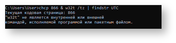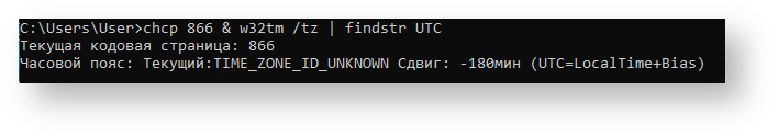 Вывести информацию о часовом поясе в системе можно с помощью команды в командной строке (cmd):