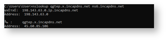 nslookup qgtep.x.incapdns.net ns6.incapdns.net