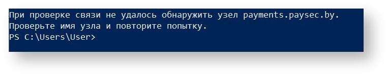 Для проверки целостности и качества соединения с сервером payments.paysec.by используется команда в Powershell: