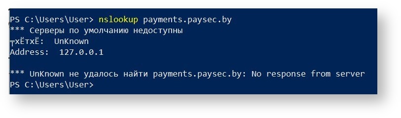 При выполнении команды значение поля Address должно совпадать с значением этого поля в предыдущей команде nslookup payments.paysec.by.