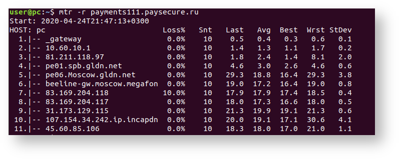 В других дистрибутивах Linux можно использовать команду traceroute payments111.paysecure.ru