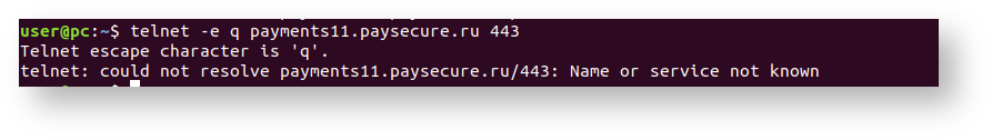 Для проверки доступности 443 порта (HTTPS) сервера payments111.paysecure.ru из сети пользователя применяется команда в терминале: